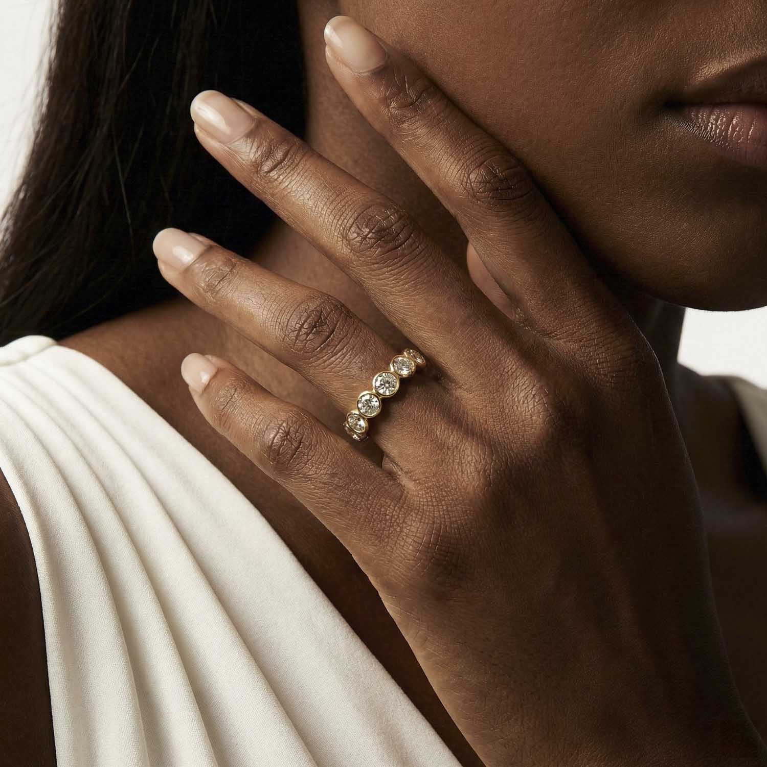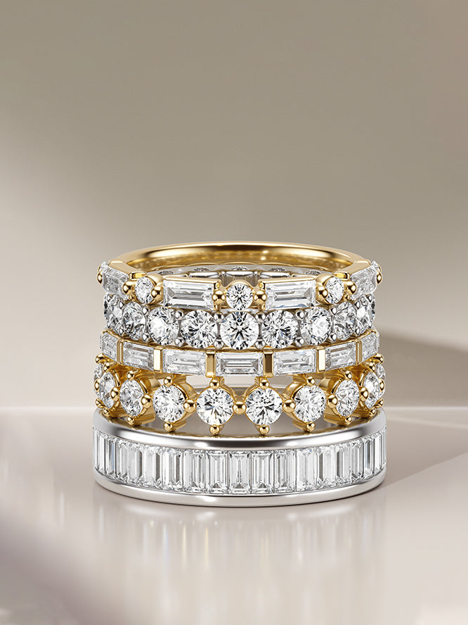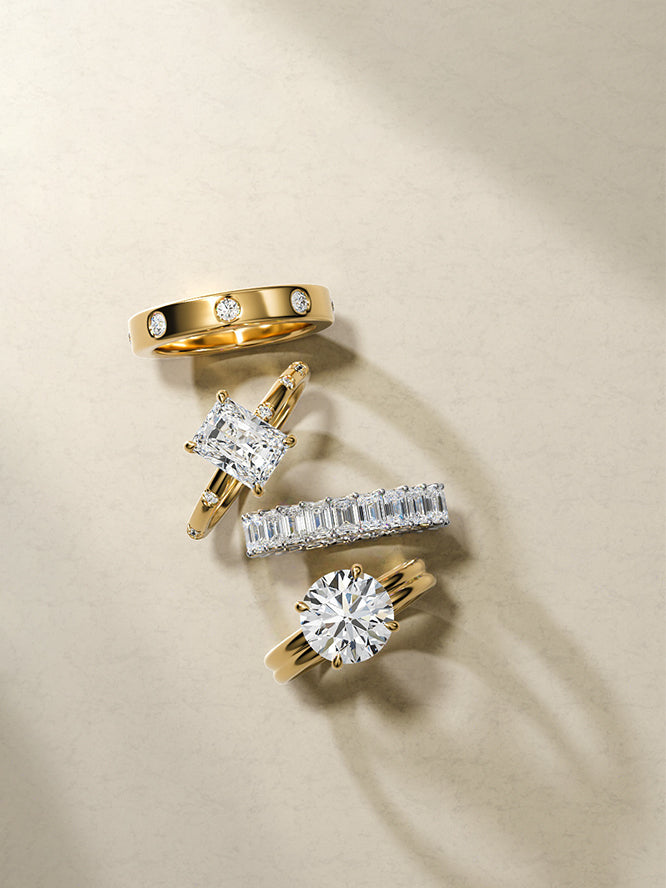 A promise cast in brilliance.Our curated selection of engagement and wedding rings, meticulously forged to tell your unique love story.